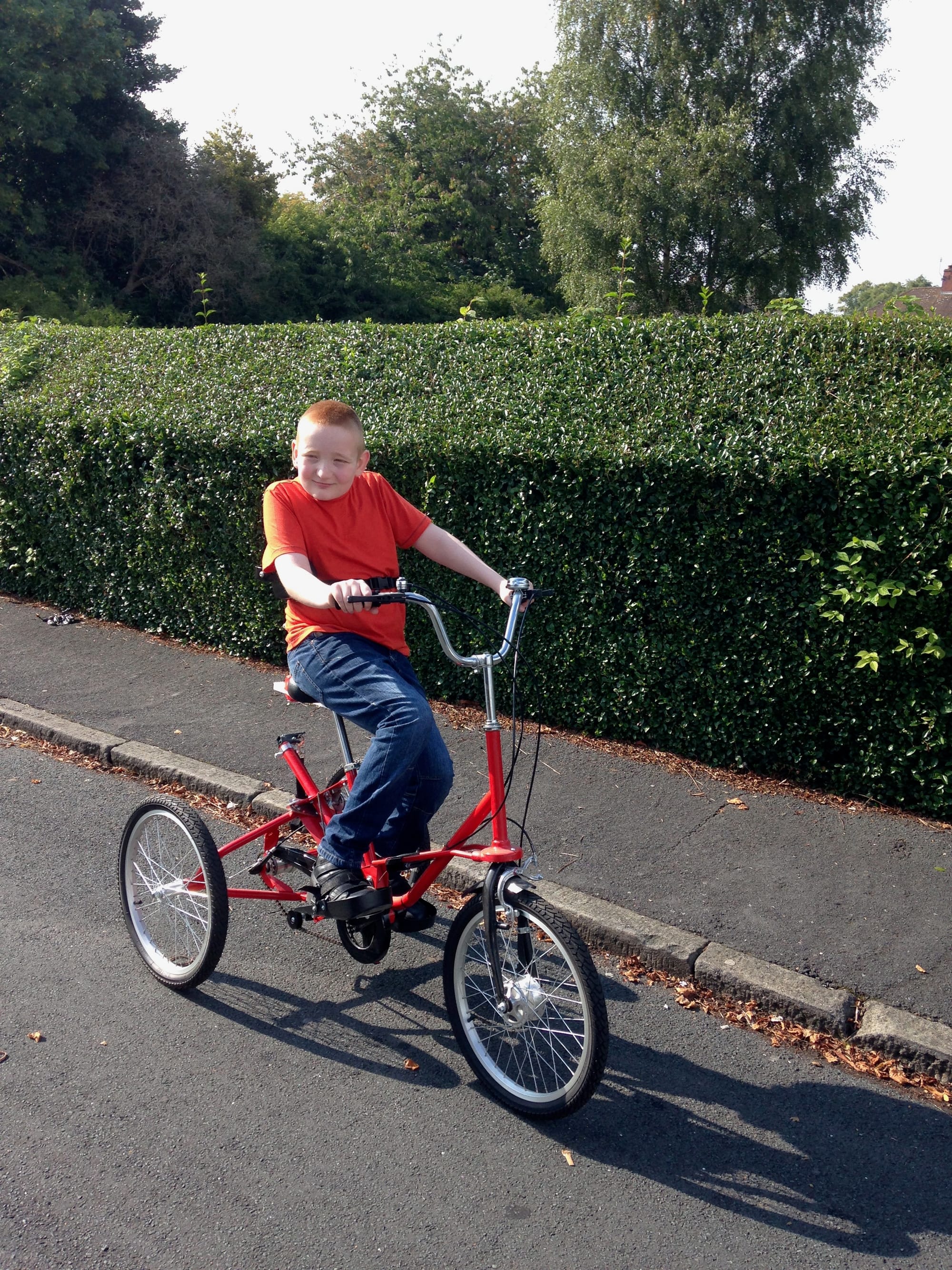 Tomcat got in touch with their recommendations for a tricycle for George, which came to a cost of around £2,500 . Unfortunately, accessible items usually cost a lot more than other items that don't need to be accessible. Fortunately, I was able to get a grant from a disability charity to pay for most of it and I paid £500 towards it. George chose the colour red for his new trike and the order was placed.