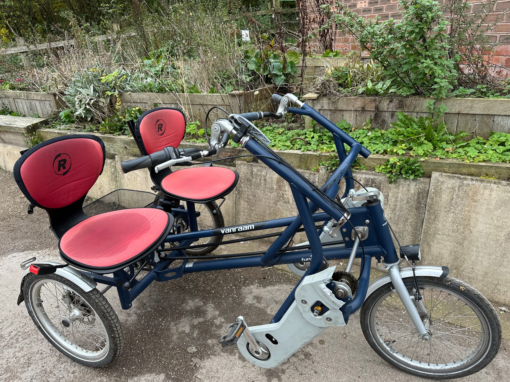 The Van Raam Fun2Go tandem and a side-by-side tandem with a seat for a non-rider at the front
