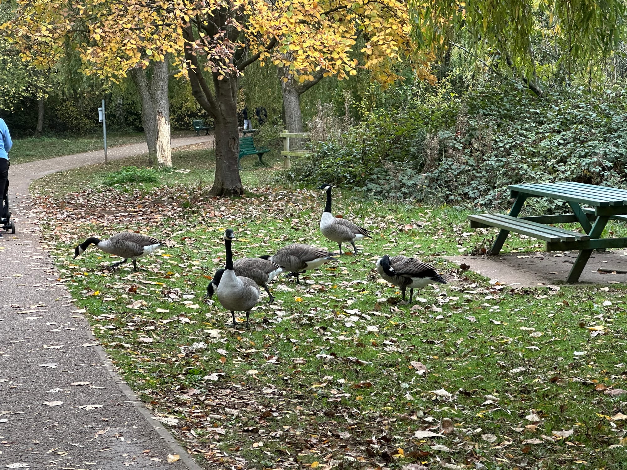 There are a lot of Canada geese around, who really don't care if they wander in front of you(!), so you do have to be on the look out for them as you cycle around.