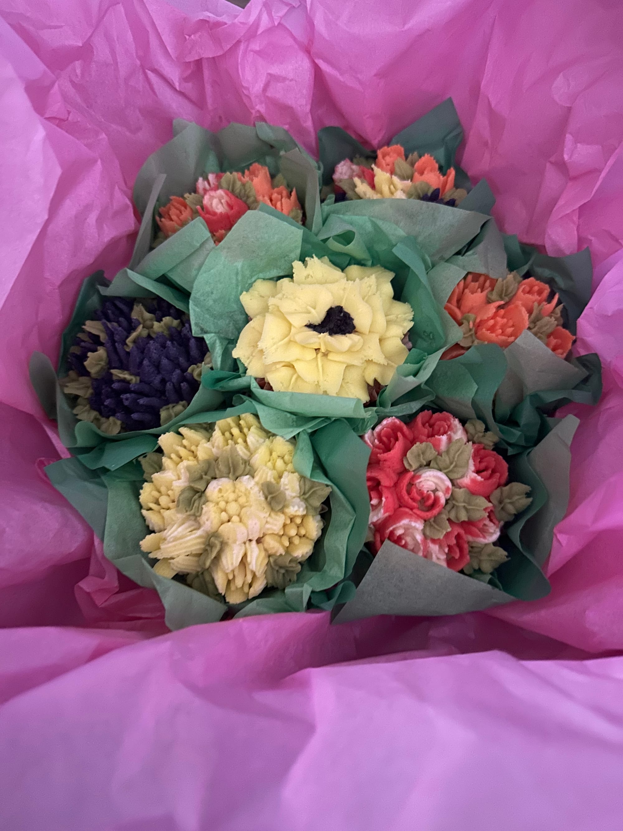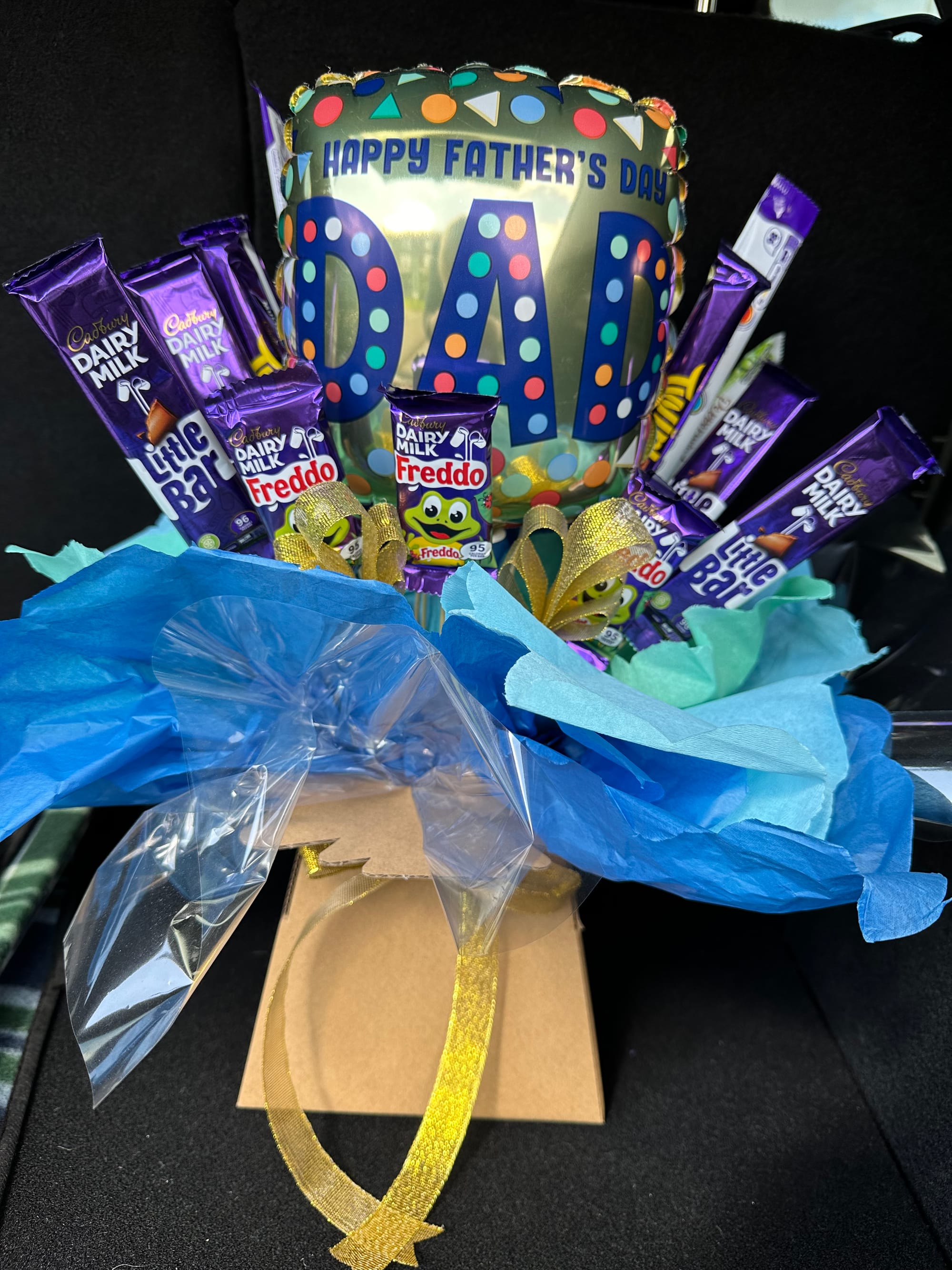 A Mothers' Day bouquet made of cupcakes and a Fathers' Day sweet box