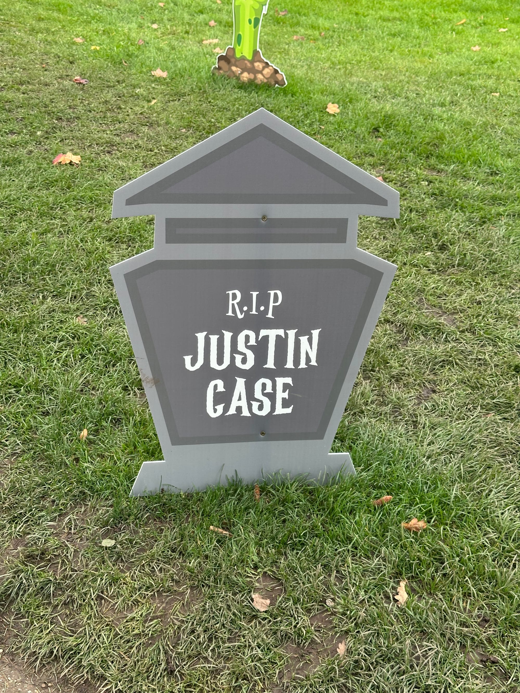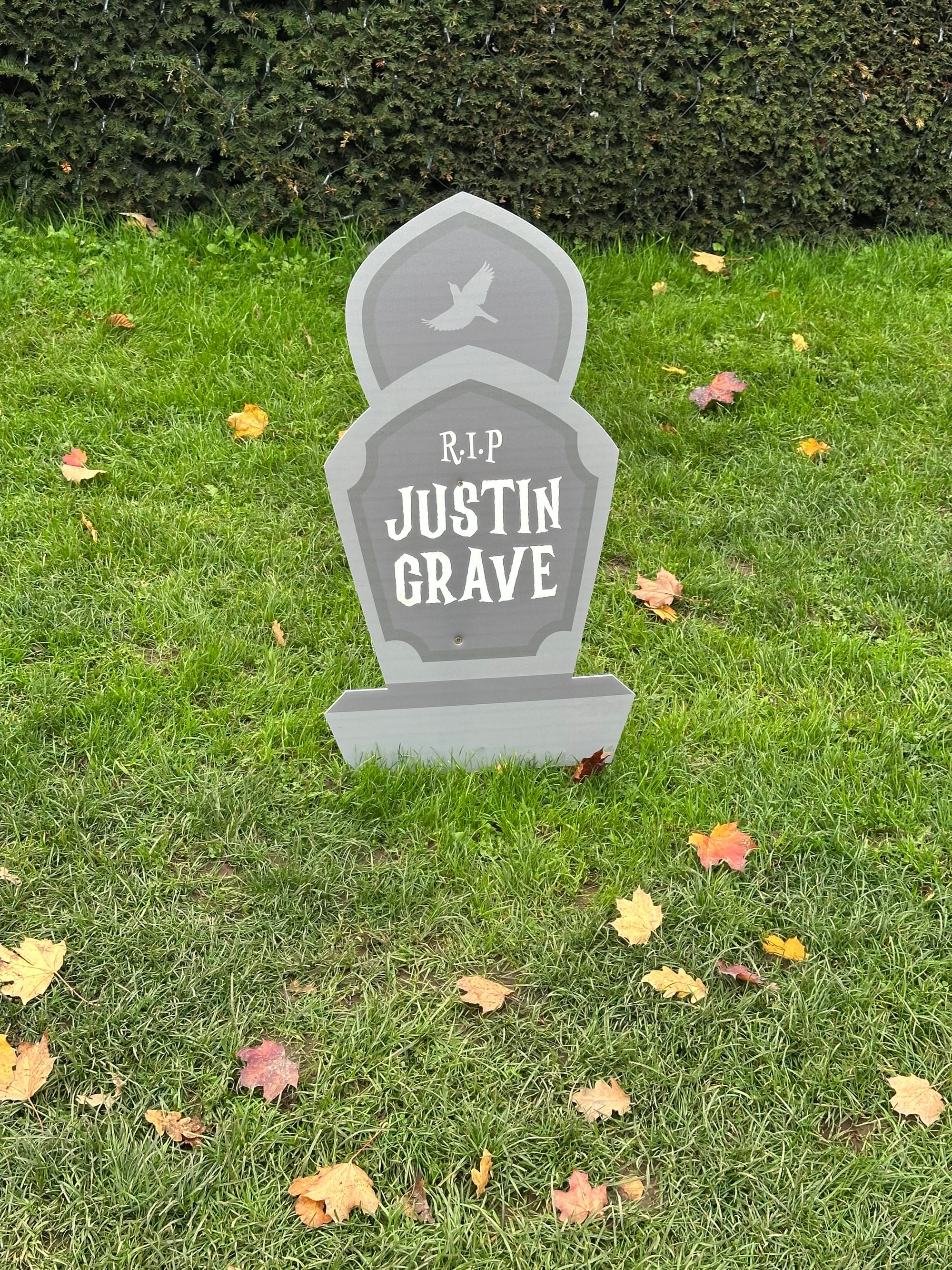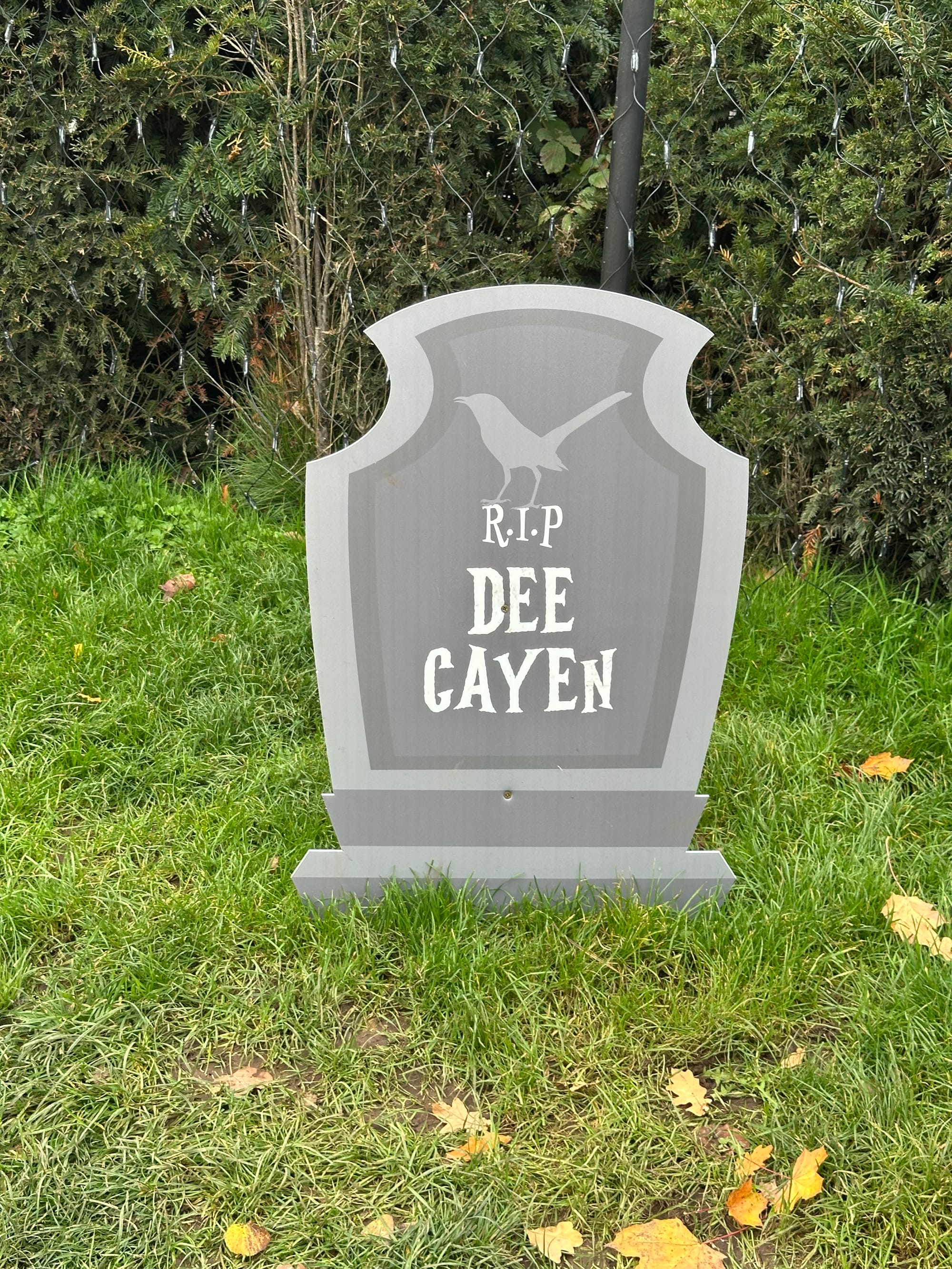 It wasn't the warmest of days, so we went to get the obligatory hot chocolate. At the side of the path on the way to the kiosk where you can buy hot chocolate, were a series of "gravestones" with really corny inscriptions on them. In a way, they were kind of reminiscent of the corny inscriptions on the headstones if you're going on the Haunted Mansion ride at Disney.